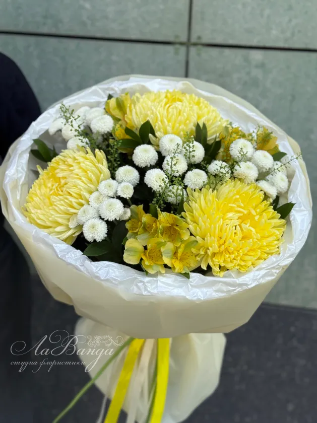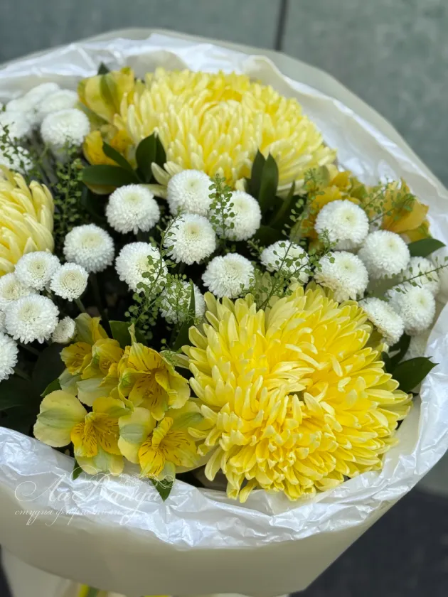 Букет на фотографии - пример нашей работы. Цветы в букете могут быть заменены в зависимости от сезона. Если в наличии каких-то цветов не будет, мы свяжемся с вами для уточнения деталей.