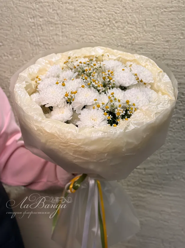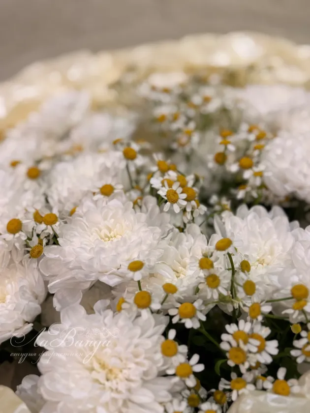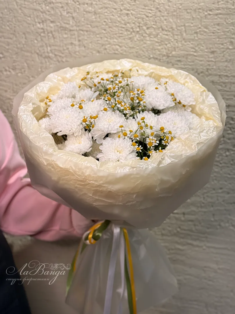Букет на фотографии - пример нашей работы. Цветы в букете могут быть заменены в зависимости от сезона. Если в наличии каких-то цветов не будет, мы свяжемся с вами для уточнения деталей.
