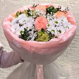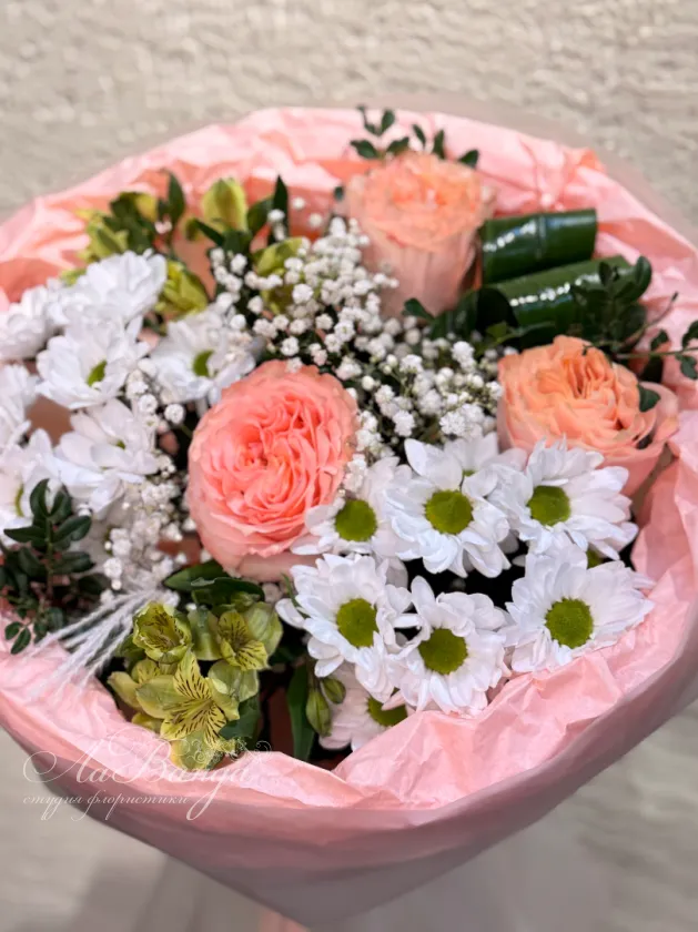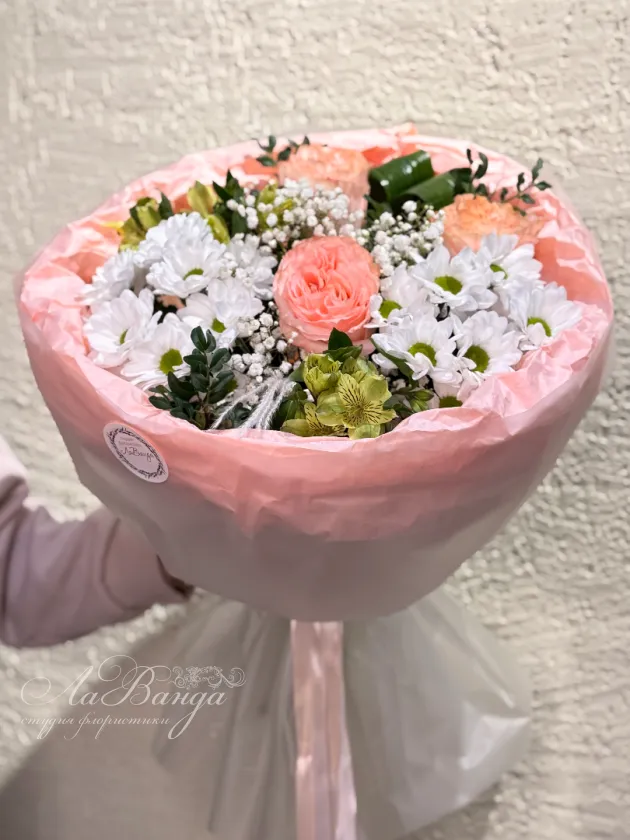 Букет на фотографии - пример нашей работы. Цветы в букете могут быть заменены в зависимости от сезона. Если в наличии каких-то цветов не будет, мы свяжемся с вами для уточнения деталей.