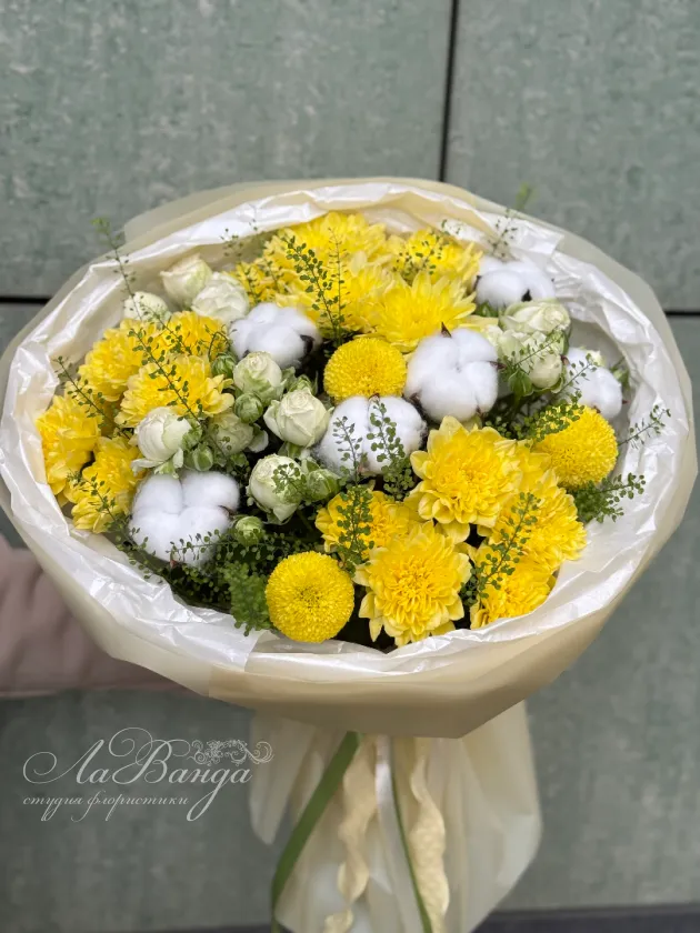 Букет на фотографии - пример нашей работы. Цветы в букете могут быть заменены в зависимости от сезона. Если в наличии каких-то цветов не будет, мы свяжемся с вами для уточнения деталей.