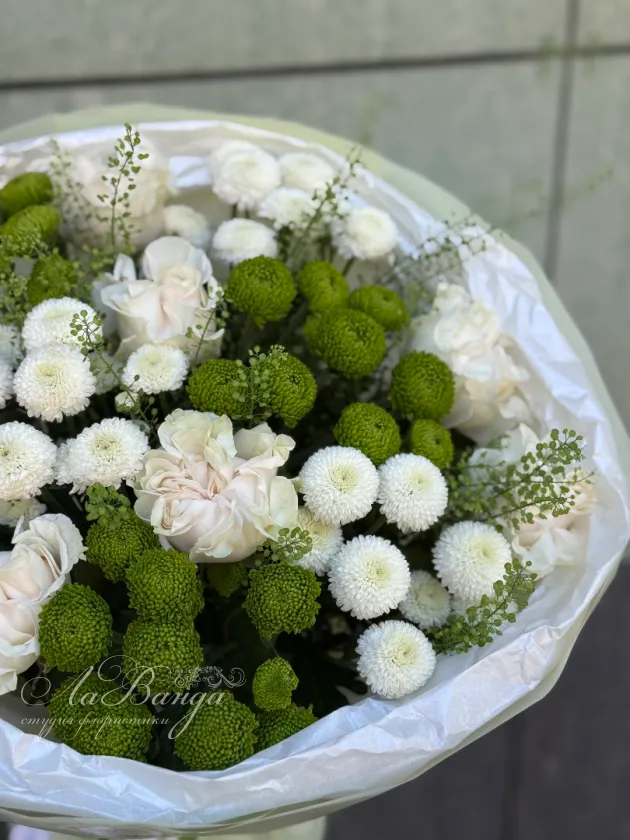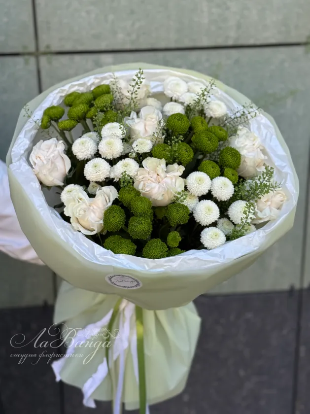 Букет на фотографии - пример нашей работы. Цветы в букете могут быть заменены в зависимости от сезона. Если в наличии каких-то цветов не будет, мы свяжемся с вами для уточнения деталей.