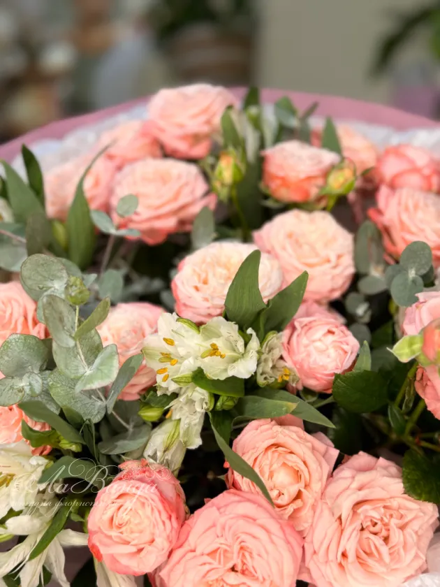 Букет на фотографии - пример нашей работы. Цветы в букете могут быть заменены в зависимости от сезона. Если в наличии каких-то цветов не будет, мы свяжемся с вами для уточнения деталей.