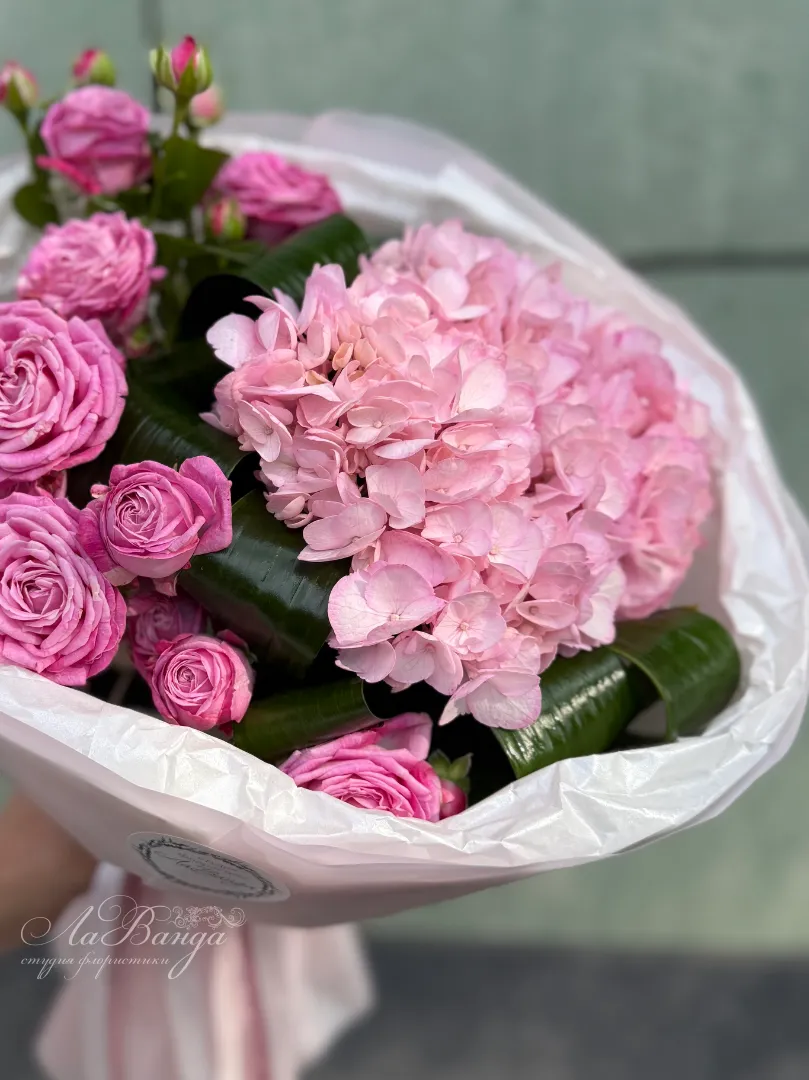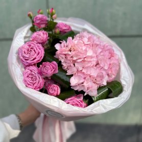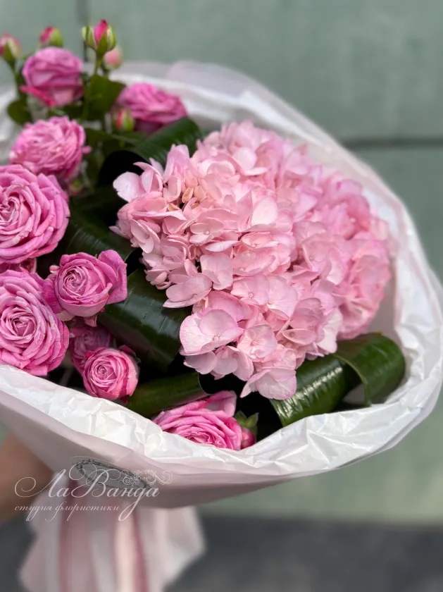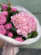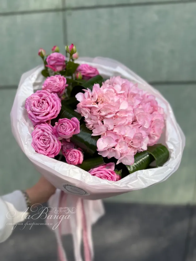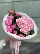 Букет с гортензией «Розовый закат»