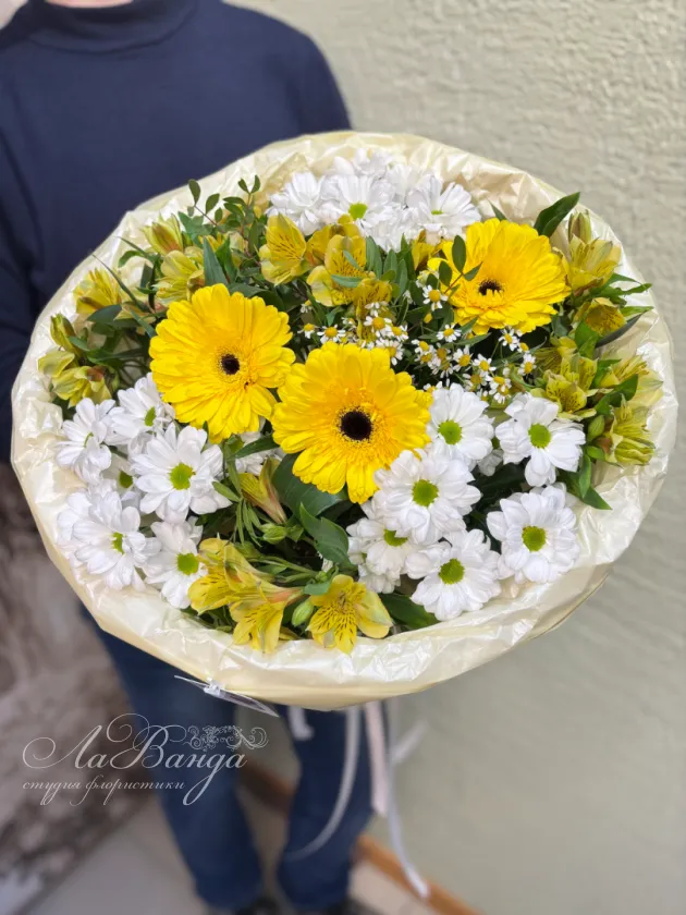 Букет на фотографии - пример нашей работы. Цветы в букете могут быть заменены в зависимости от сезона. Если в наличии каких-то цветов не будет, мы свяжемся с вами для уточнения деталей.