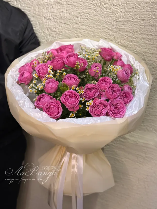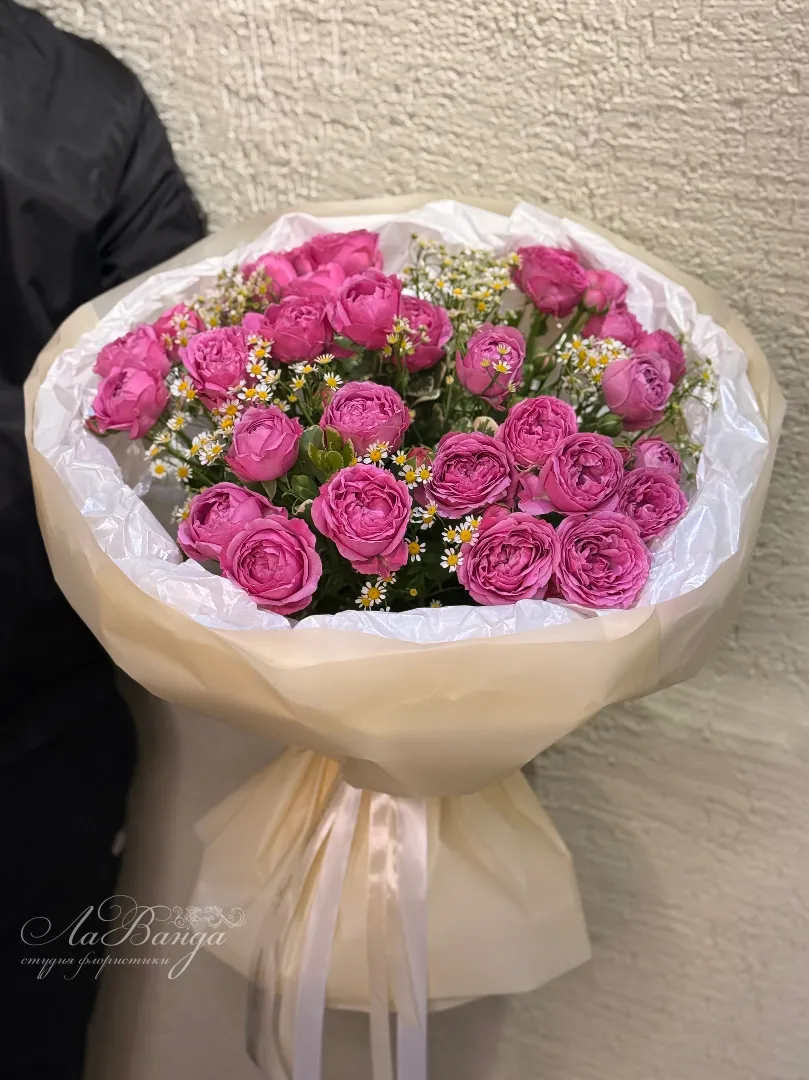 Букет на фотографии - пример нашей работы. Цветы в букете могут быть заменены в зависимости от сезона. Если в наличии каких-то цветов не будет, мы свяжемся с вами для уточнения деталей.