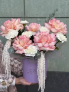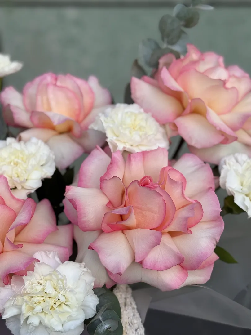 Букет на фотографии - пример нашей работы. Цветы в букете могут быть заменены в зависимости от сезона. Если в наличии каких-то цветов не будет, мы свяжемся с вами для уточнения деталей.