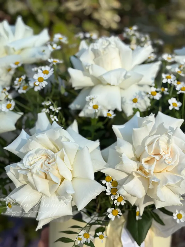 Букет на фотографии - пример нашей работы. Цветы в букете могут быть заменены в зависимости от сезона. Если в наличии каких-то цветов не будет, мы свяжемся с вами для уточнения деталей.