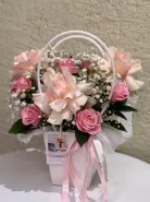 Букет на фотографии - пример нашей работы. Цветы в букете могут быть заменены в зависимости от сезона. Если в наличии каких-то цветов не будет, мы свяжемся с вами для уточнения деталей.