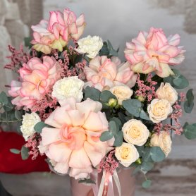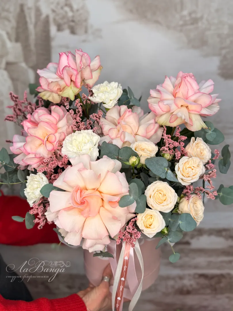 Букет на фотографии - пример нашей работы. Цветы в букете могут быть заменены в зависимости от сезона. Если в наличии каких-то цветов не будет, мы свяжемся с вами для уточнения деталей.