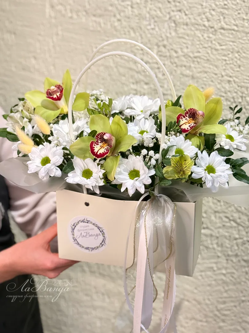 Букет на фотографии - пример нашей работы. Цветы в букете могут быть заменены в зависимости от сезона. Если в наличии каких-то цветов не будет, мы свяжемся с вами для уточнения деталей.