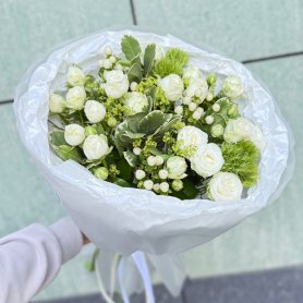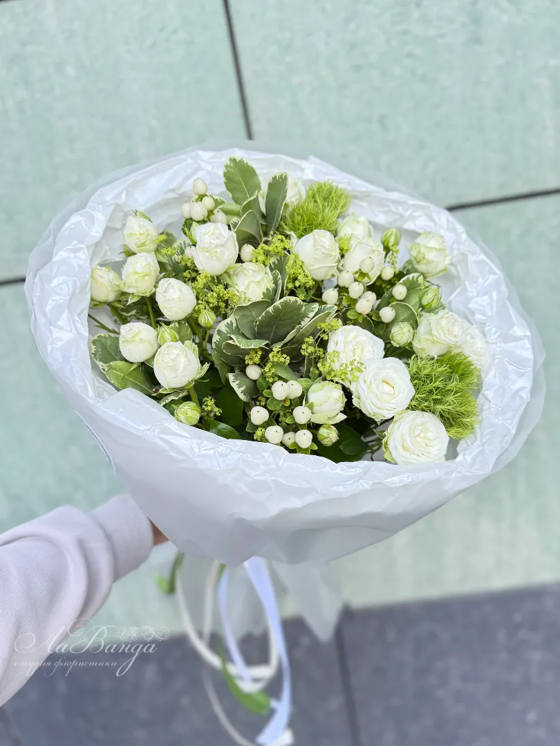 Букет с кустовыми розами «Белоснежный»